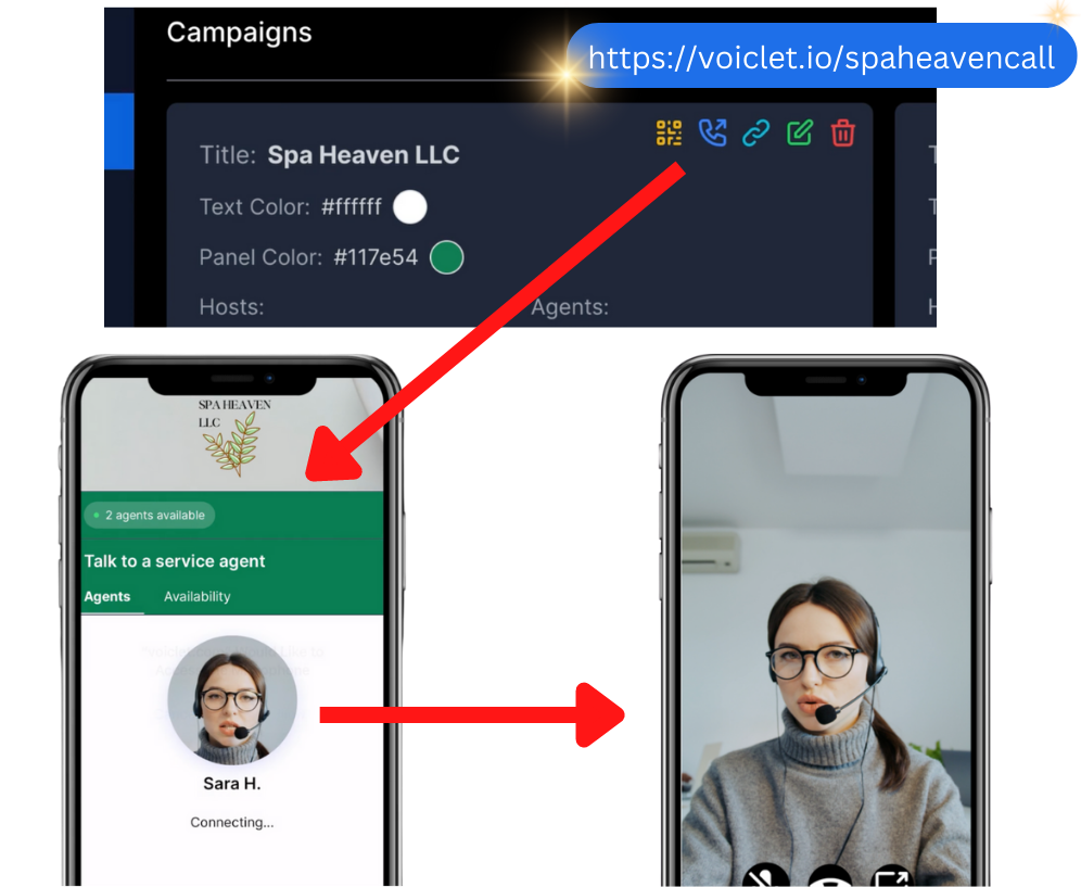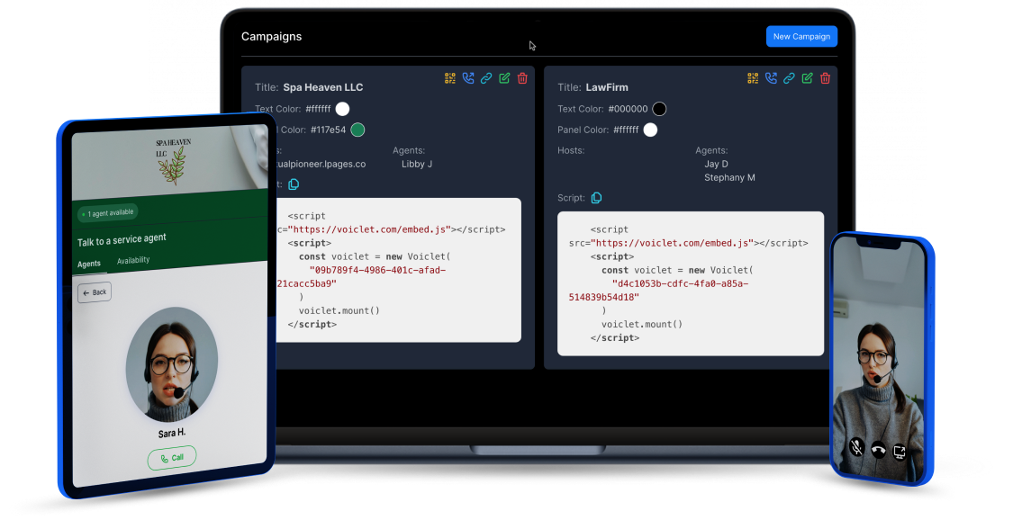 Organize campaigns by type and clients, and assign specific agents to each campaign that will answer the video calls or voice calls. Assign multiple agents to any campaign.