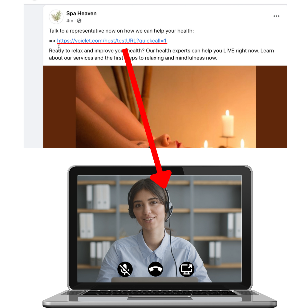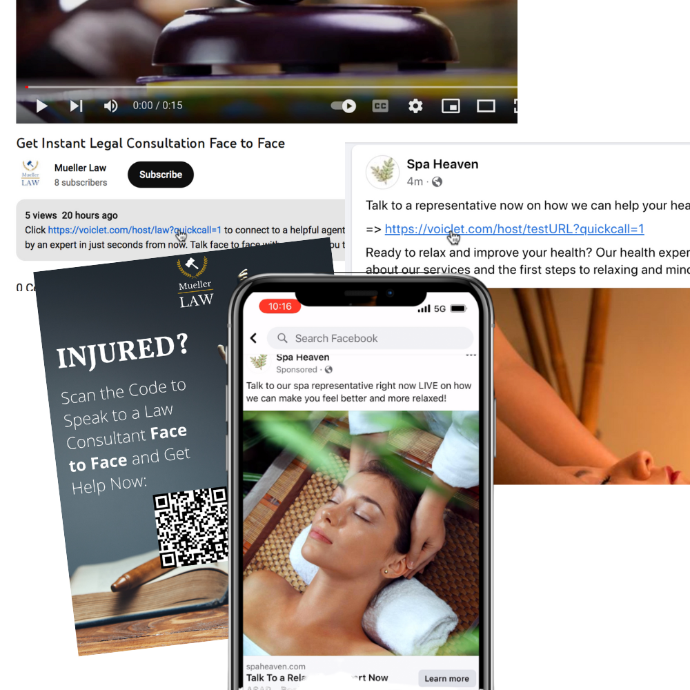 Create links that open up your video or voice funnel when clicked. As soon as a client clicks the link, a video call with start with an agent ready to answer their questions and close them fast!