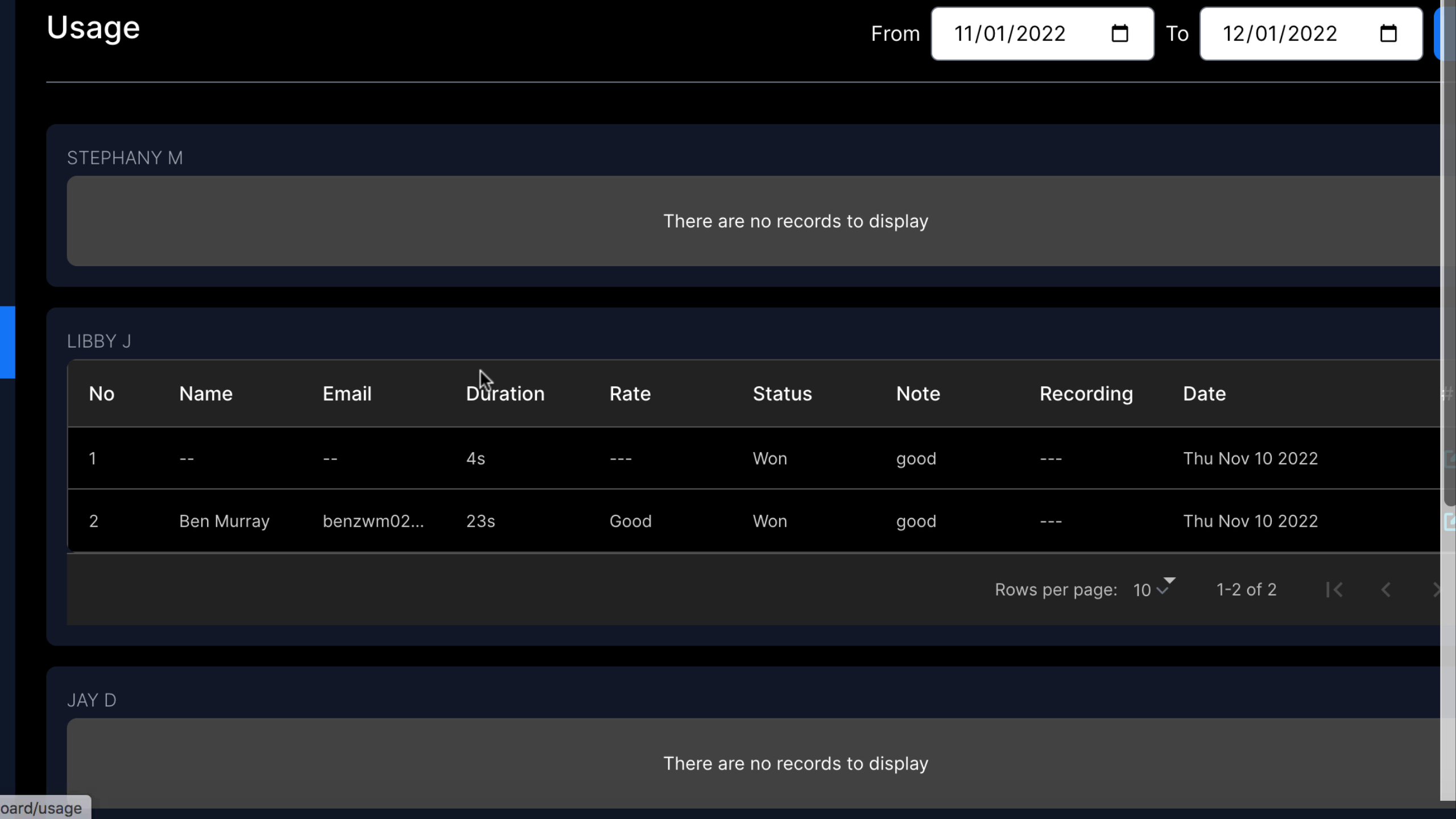 At anytime, check stats like agents who picked up, video call time, minutes used, and more.